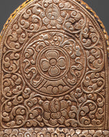 The face of the stamp is adorned with finely detailed animals, including the mouse, ox, tiger, rabbit, dragon, snake, horse, sheep, monkey, bird, dog, and boar, crafted in relief with golden brass against floral engravings. These zodiac animals are believed to offer guidance, protection, and balance, making this piece both a decorative treasure and a spiritual tool. Whether placed in a shrine, used as a ritual item, or displayed as traditional Himalayan art, it radiates cultural richness and sacred meaning.