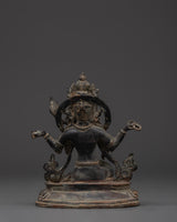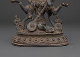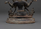 This Saraswati statue is crafted with precision and skill, highlighting the fine details of the goddess's beautiful body as well as the delicate depiction of her sacred musical instrument, the veena. The copper body, featuring an antique finish, enhances the spiritual appeal, creating an elegant look that complements any décor style. This statue, whether put on an altar or in your meditation room, contributes to the creation of a peaceful, focused, and artistic environment.
