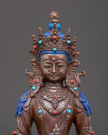 Handcrafted Tibetan Sacred Amitayus Statue | Buddha of Infinite Life