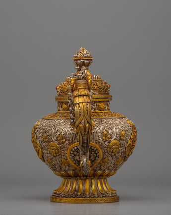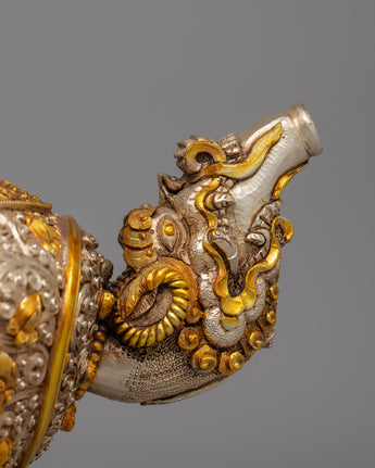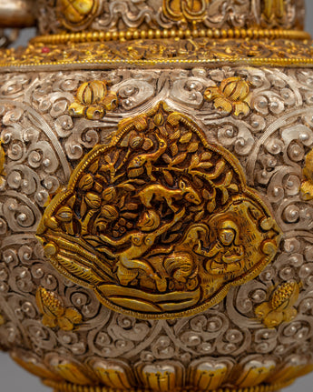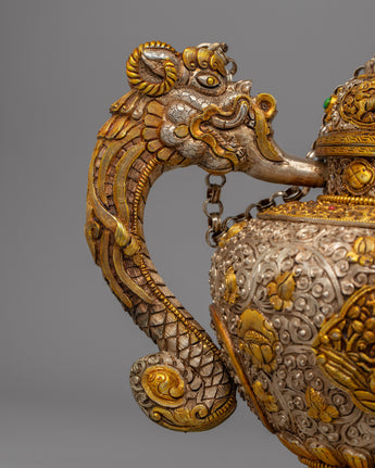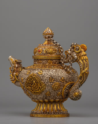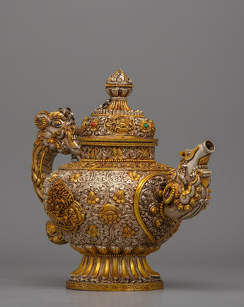 Handcrafted Tibetan Tea Pot with Gold & Silver Plating | Traditional Buddhist Decor