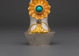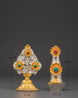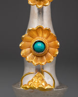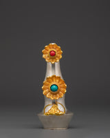 Handcrafted Tibetan Torma Set | Copper, Silver Plated with Coral & Turquoise Stones