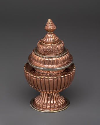 Handmade Buddhist Rice Vessel | Copper and White Metal Ritual Pot with Lid