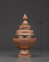 This Handmade Buddhist Rice Vessel is a traditional ritual vessel used in spiritual ceremonies to present rice, grains, or precious objects during puja. Its size is 16cm in height and 9cm in width, and it weighs 0.33kg, making it suitable for both personal and temple altars. Its stacked lid and classic design add cultural authenticity and spiritual symbolism to your sacred place.