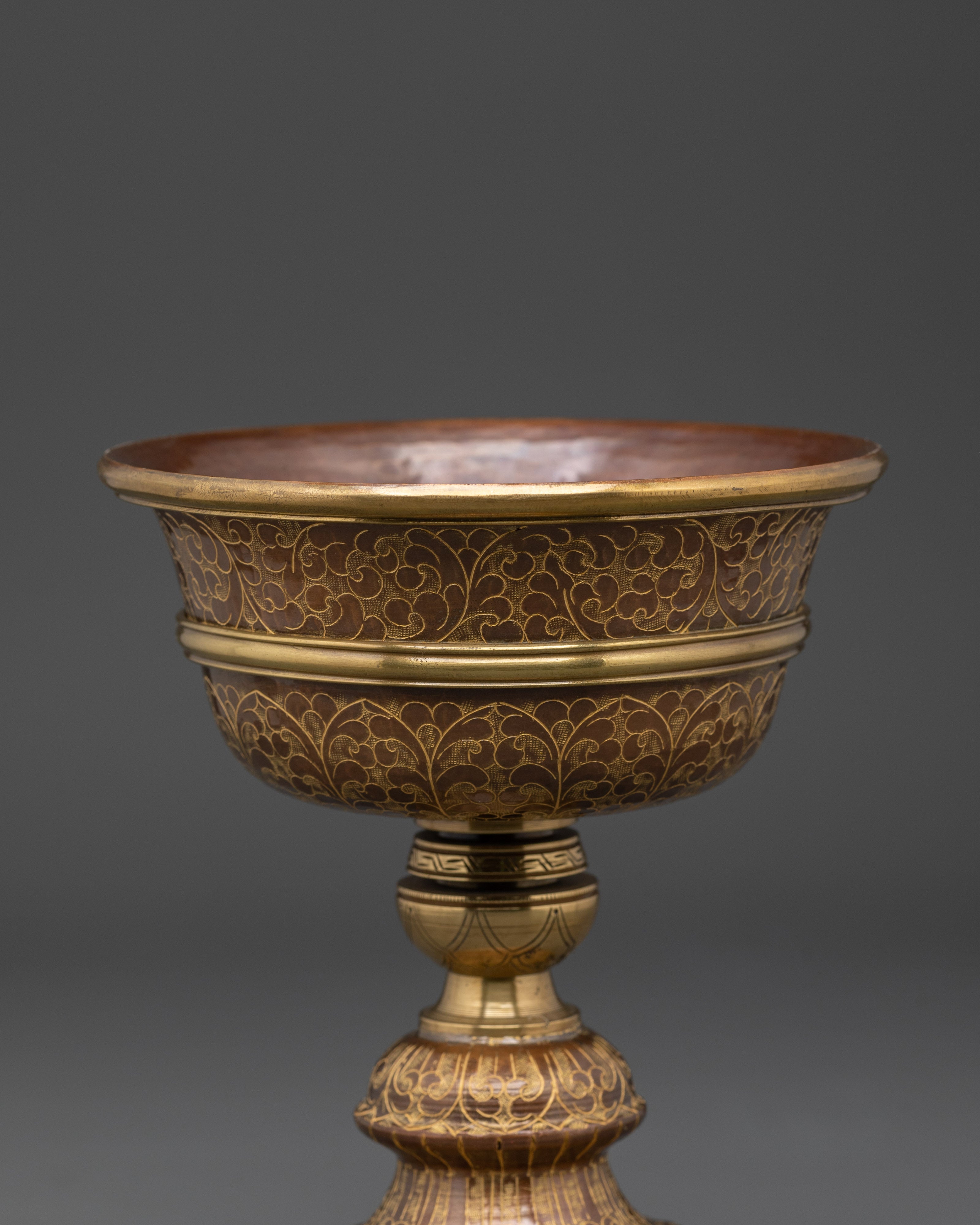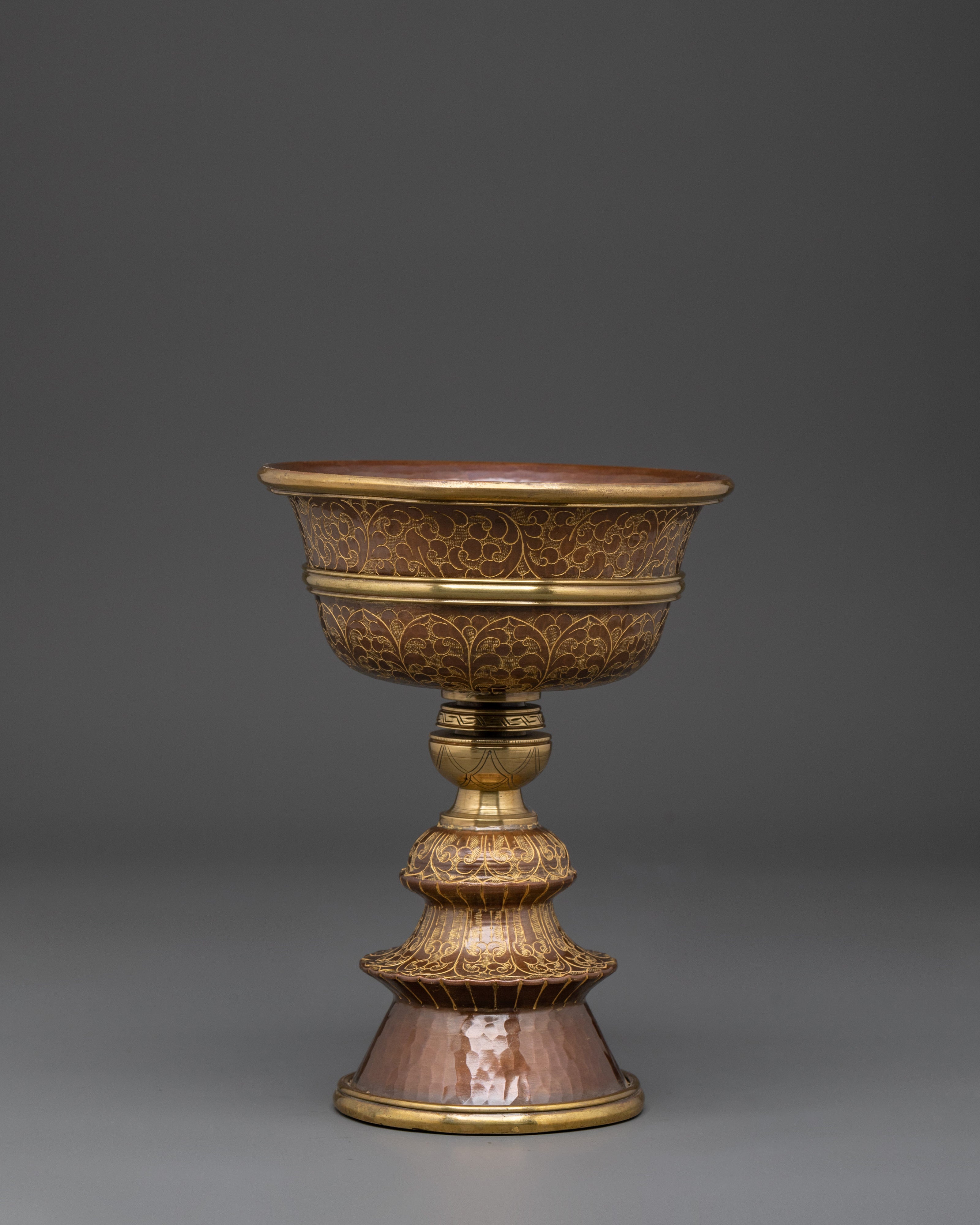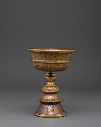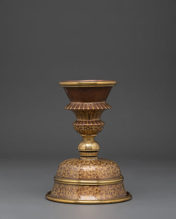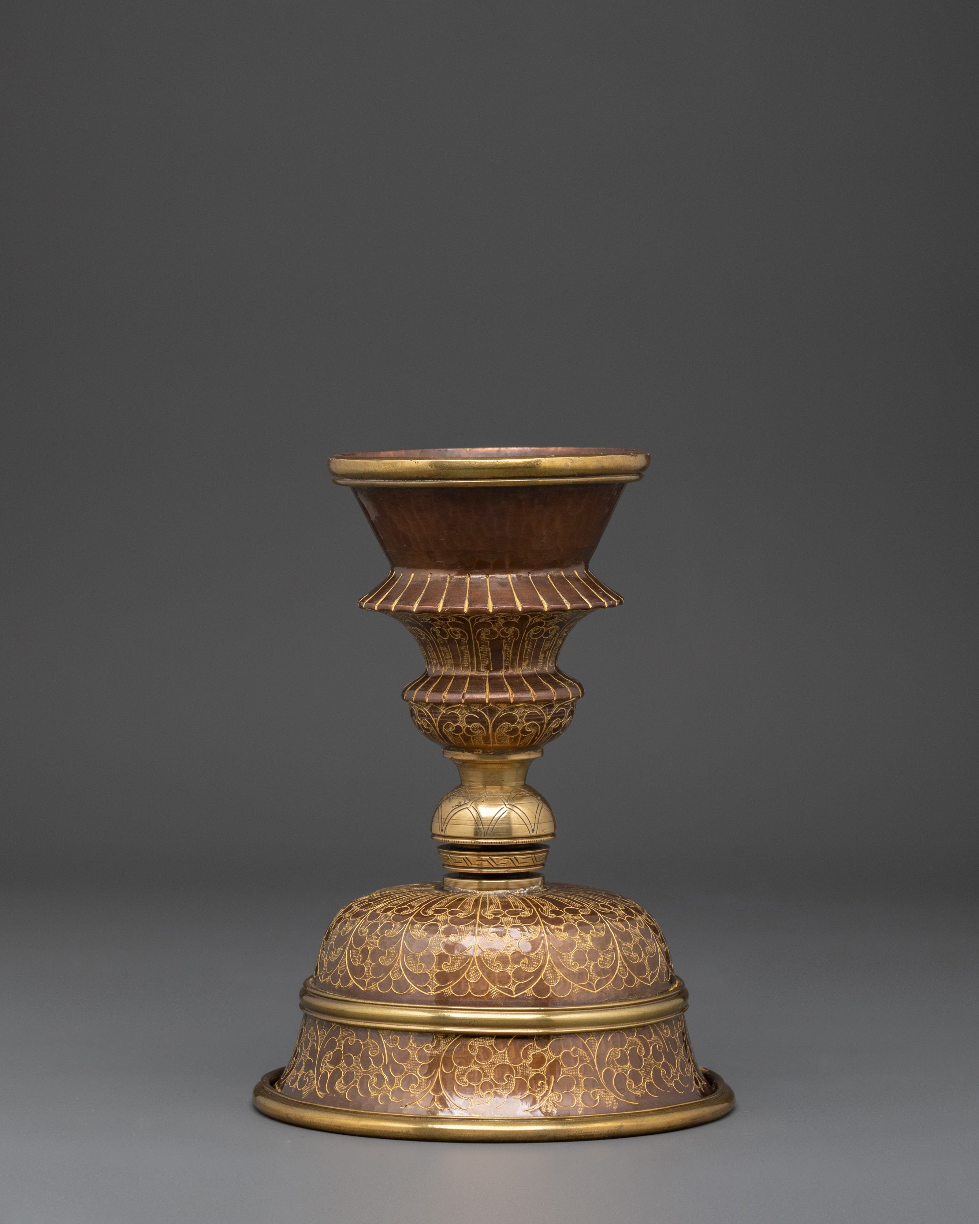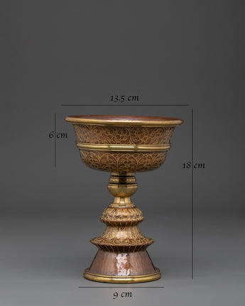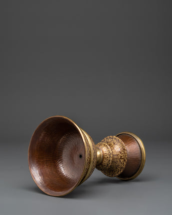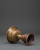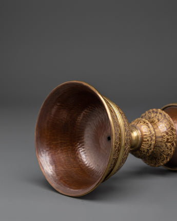 Handmade Buddhist Ritual Butter Lamp Set | Copper and Gold Coated Lamp