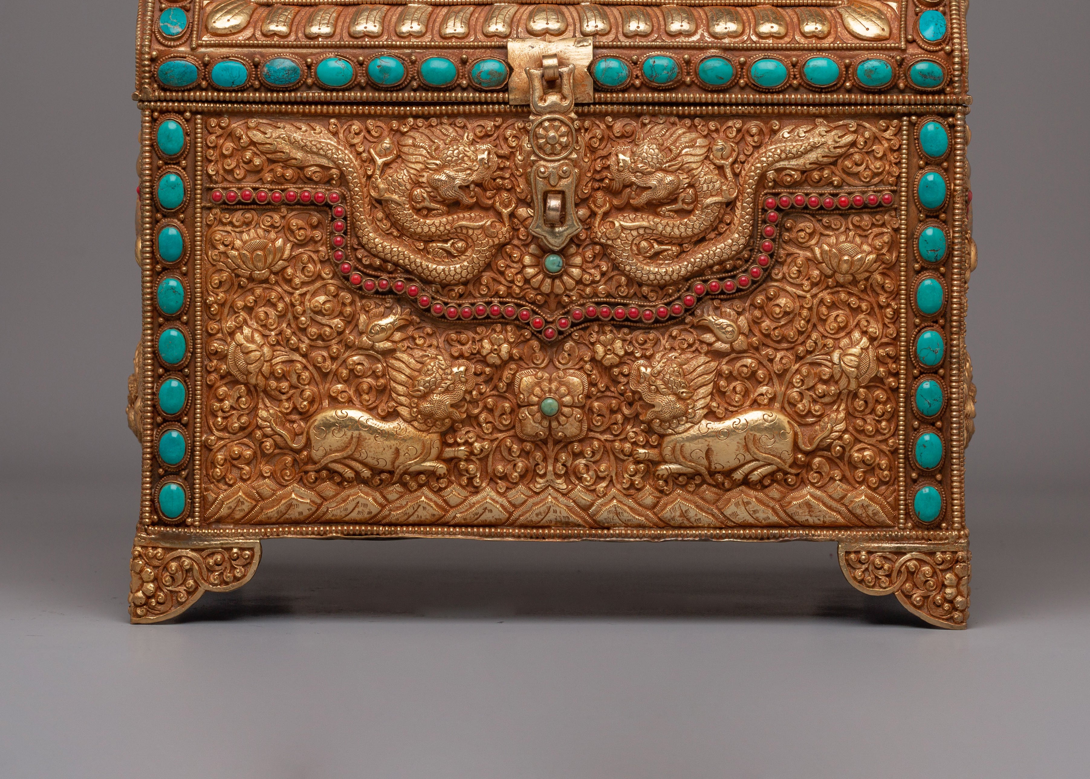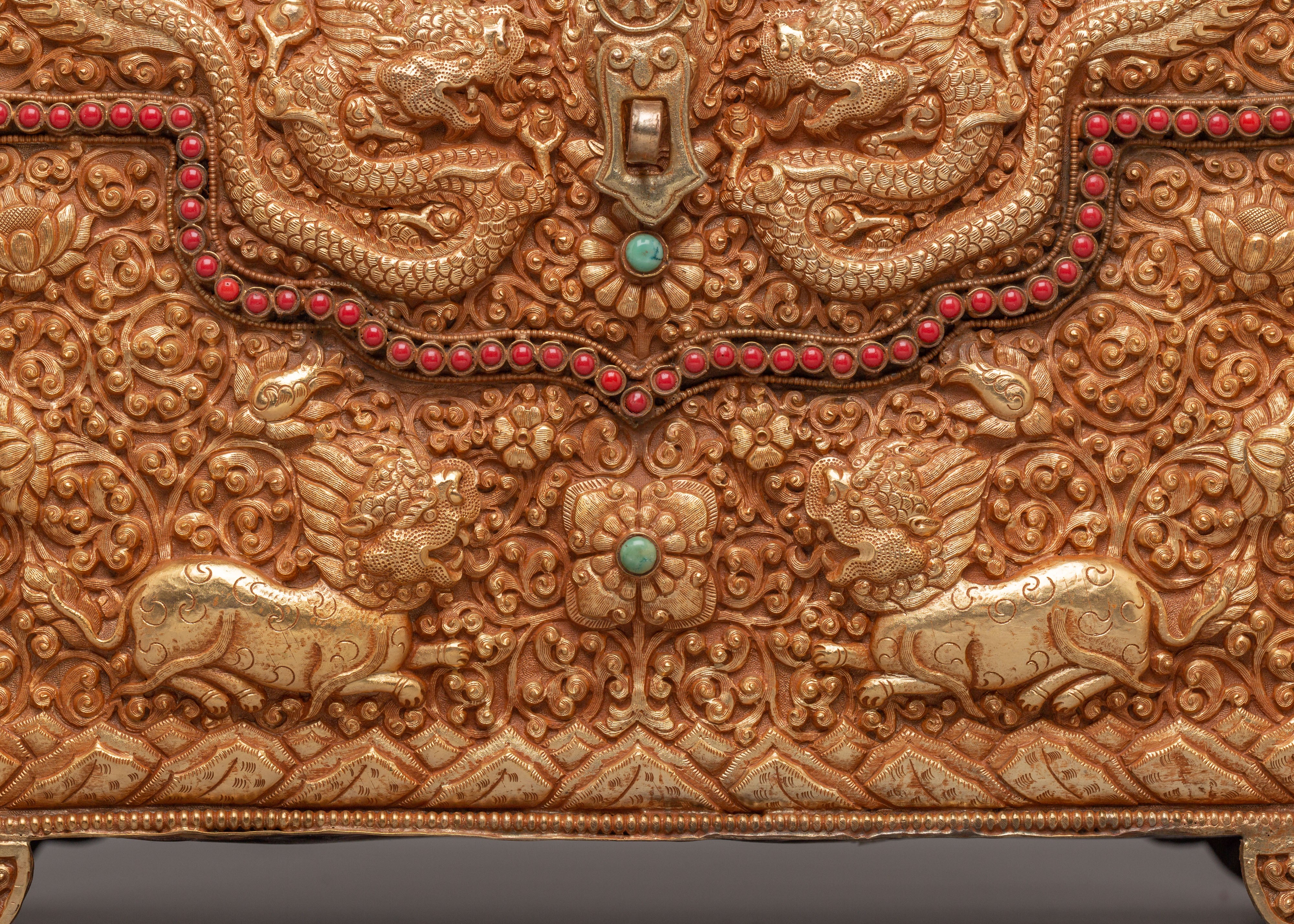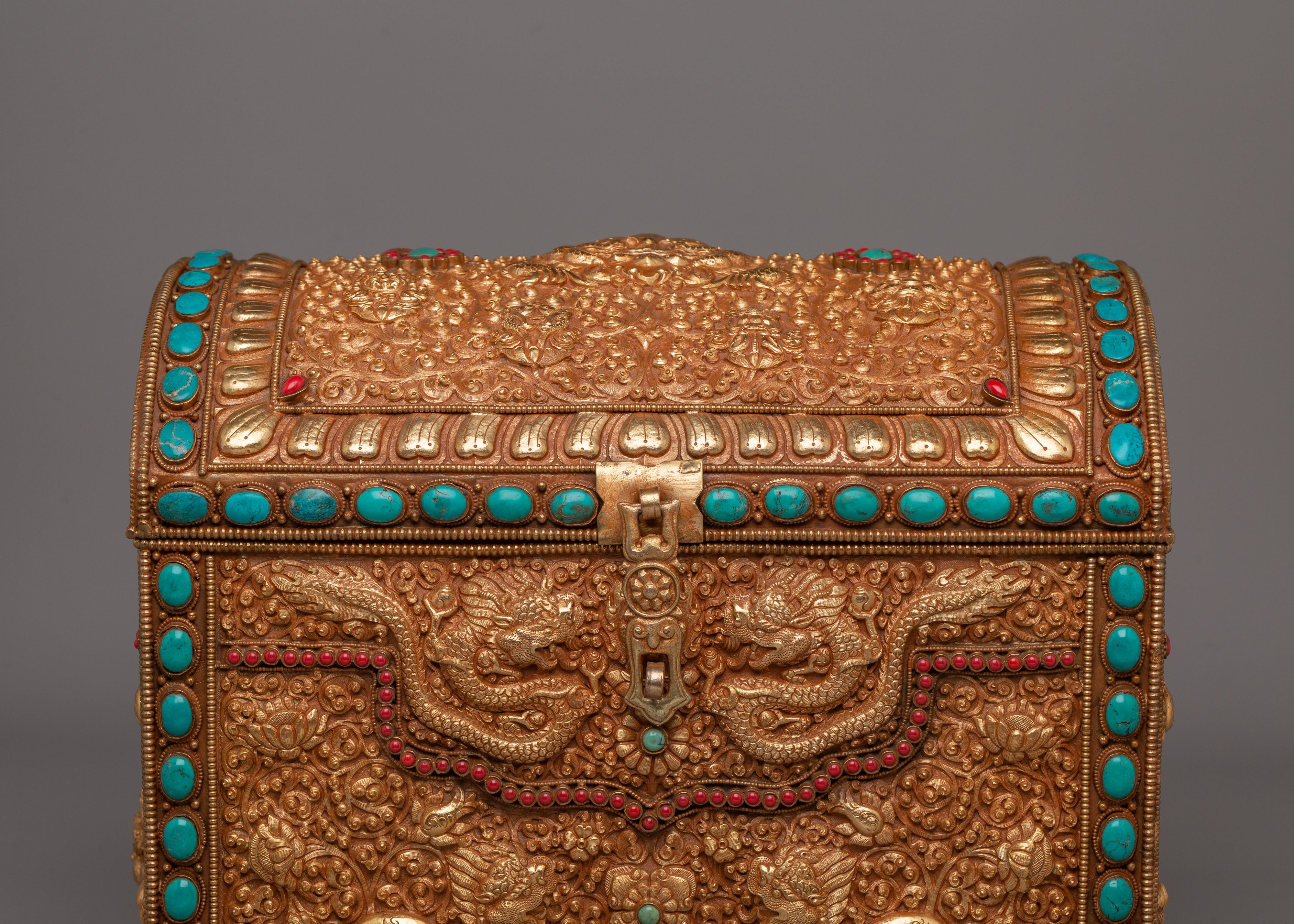 Tibetan Dragon Treasure Box | Gemstone & Gold Plated Copper