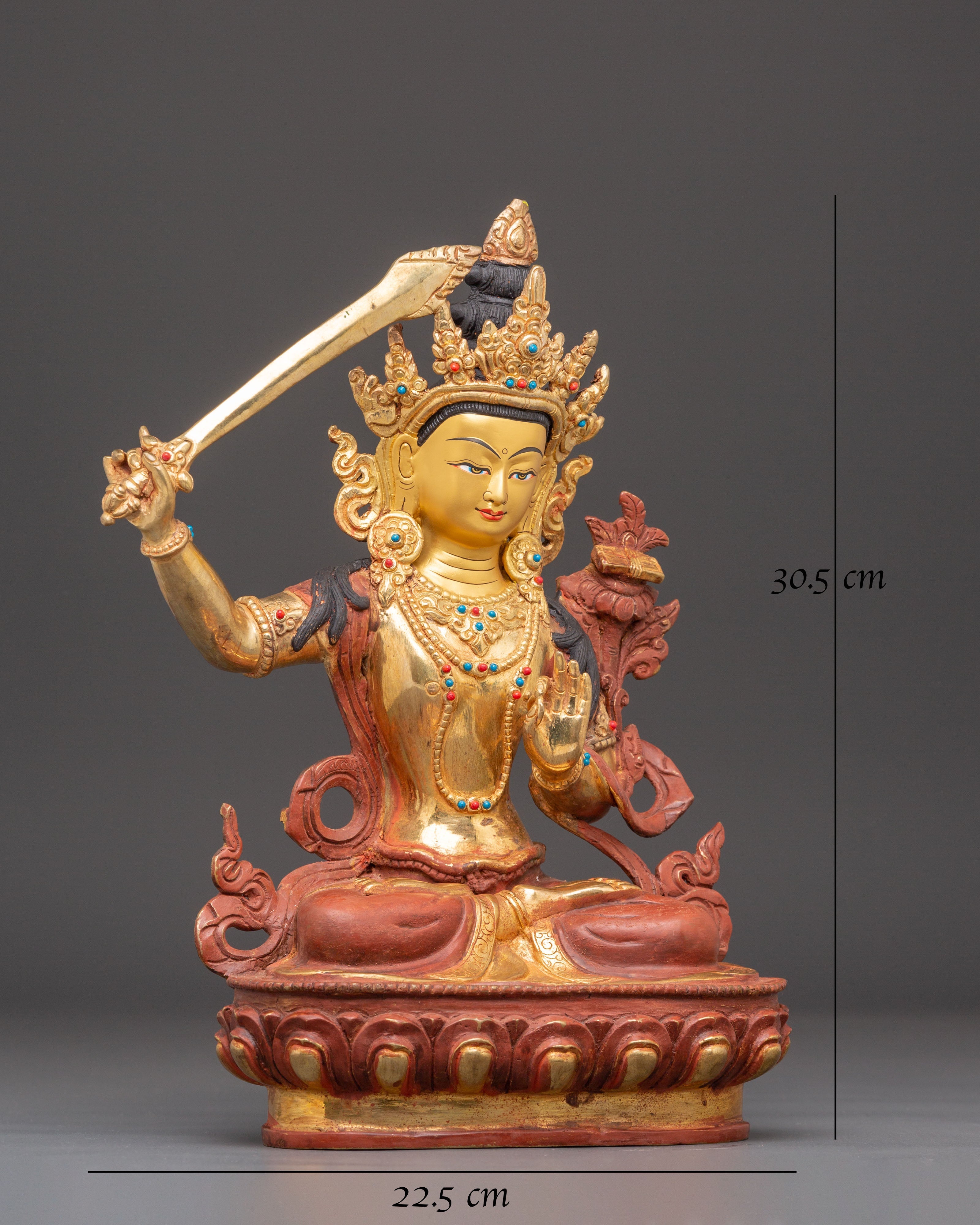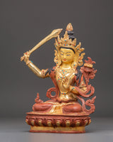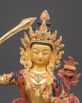 Handmade Golden Statue of Manjushri, the Wisdom Bodhisattva | Enlightened Presence