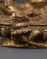 This handcrafted Spiritual Green Tara Statue is a stunning sculpture that represents protection, guidance, and liberty. This statue, made of brass, measures 14.5cm tall and 11cm broad and features intricate details of Green Tara, the adored Tibetan deity. Green Tara represents strength and compassion, and she is well-known for her quick assistance when needed. This statue is perfect for your meditation practice or as a meaningful addition to your home decor, offering a sense of calm and spiritual energy.