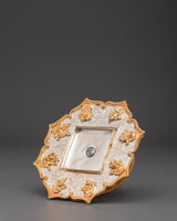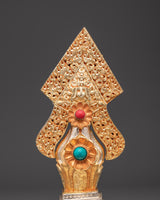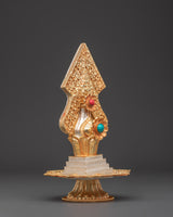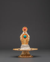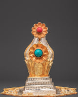 Each Torma, handcrafted with care and love, is a unique work of art with significant cultural and spiritual significance. The gold and silver plating heightens its spiritual presence, imbuing any room with a mystical aura. The blue and coral accents charge the Torma with healing energy, promoting emotional balance and clarity during meditation or prayer. This Torma is ideal for spiritual practitioners, as it adds divine energy and calm to your surroundings, transforming them into a place of healing and alignment.