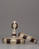 Handmade Tibetan Mandala Offering Set | Copper Body with Silver Plating and Acrylic Detailing