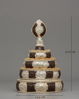 With this wonderfully created Mandala Offering Set, you may immerse yourself in Tibet's rich ritual heritage. This sculpture, made of copper and embellished with silver plating, is a marvel of spiritual creativity. The colorful acrylic paint detailing provides a contemporary touch while retaining cultural significance.