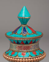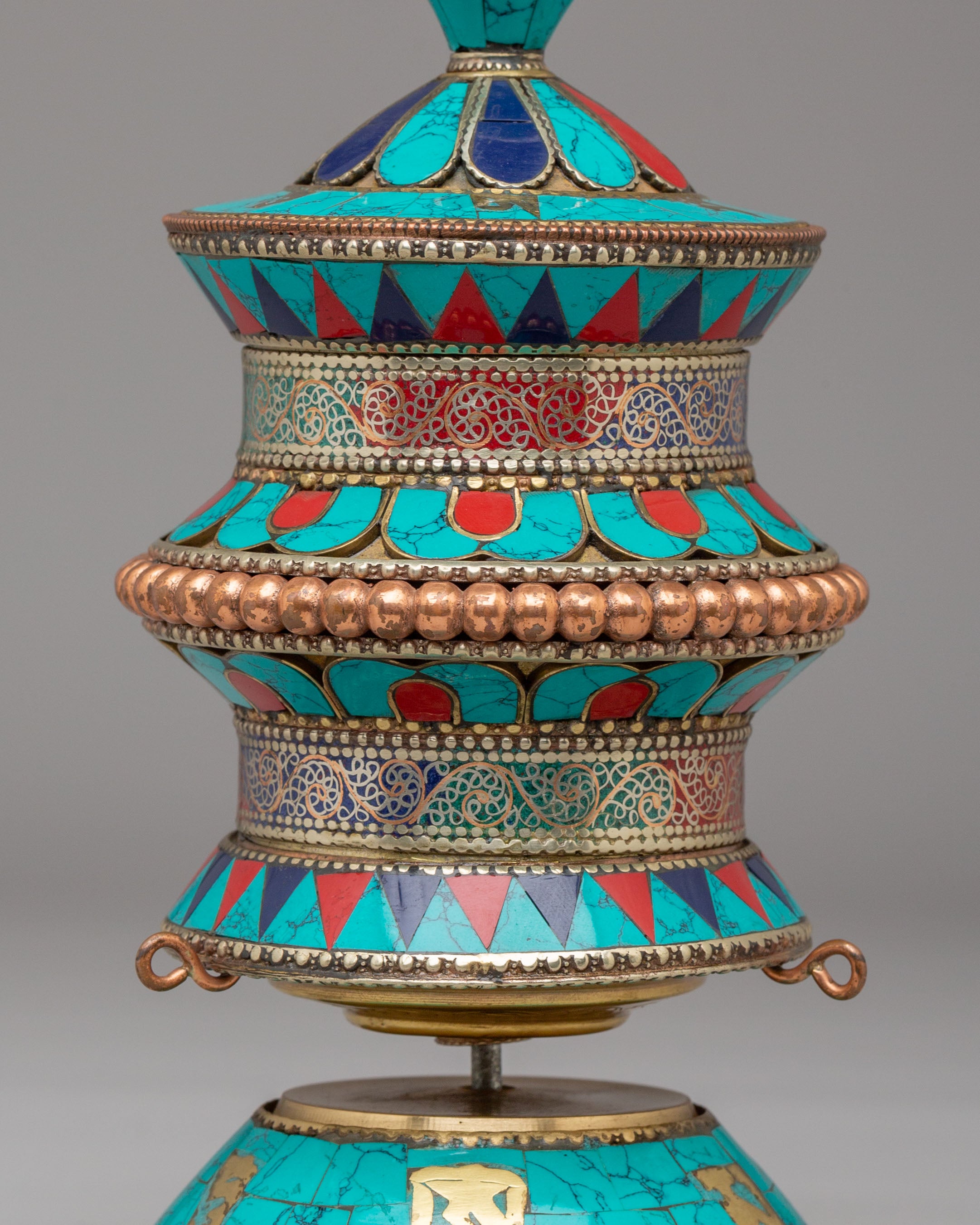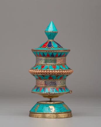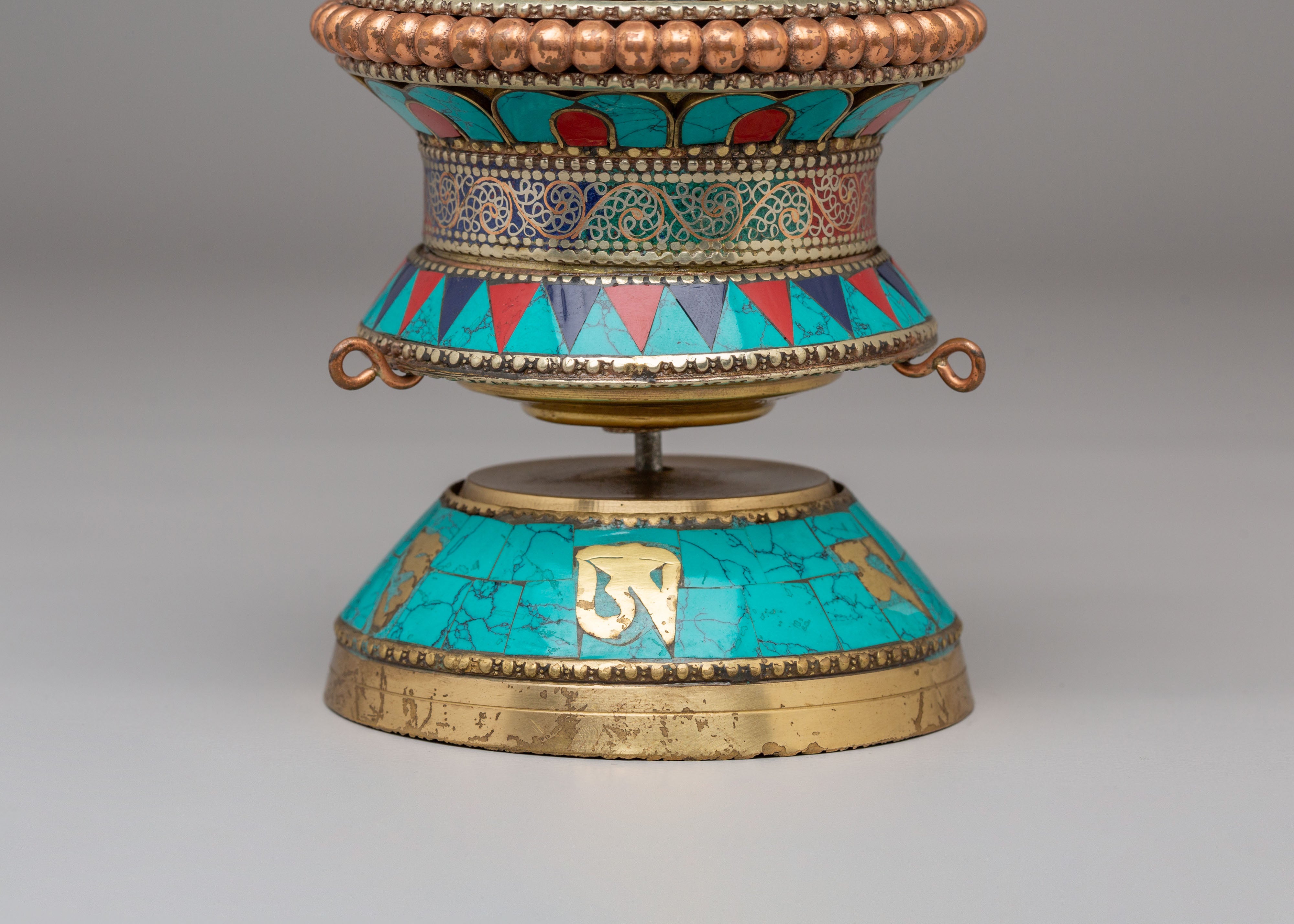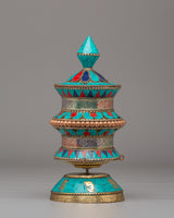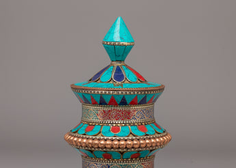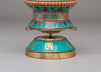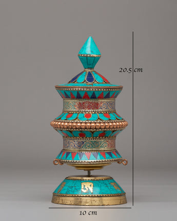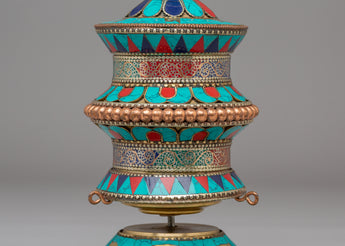 Handmade Tibetan Ritual Prayer Wheel | Copper Body with Gemstones