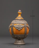 The delicate designs engraved on the pot highlight the ability of traditional craftspeople. Floral and symbolic motifs highlight concepts of affluence and sacred beauty, but the rounded shape represents wholeness and completion. This conventional rice pot is more than just a decorative item; it embodies heritage, spirituality, and dedication, making it an essential object for spiritual practice, cultural ceremonies, or as a stunning historical décor piece.