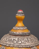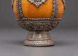 This piece, crafted with silver plating and embellished with artificial coral stone, boasts superb design, harmonious proportions, and elegant craftsmanship. It's an excellent addition to altars, shrines, and home decor collections, providing both aesthetic appeal and cultural importance.