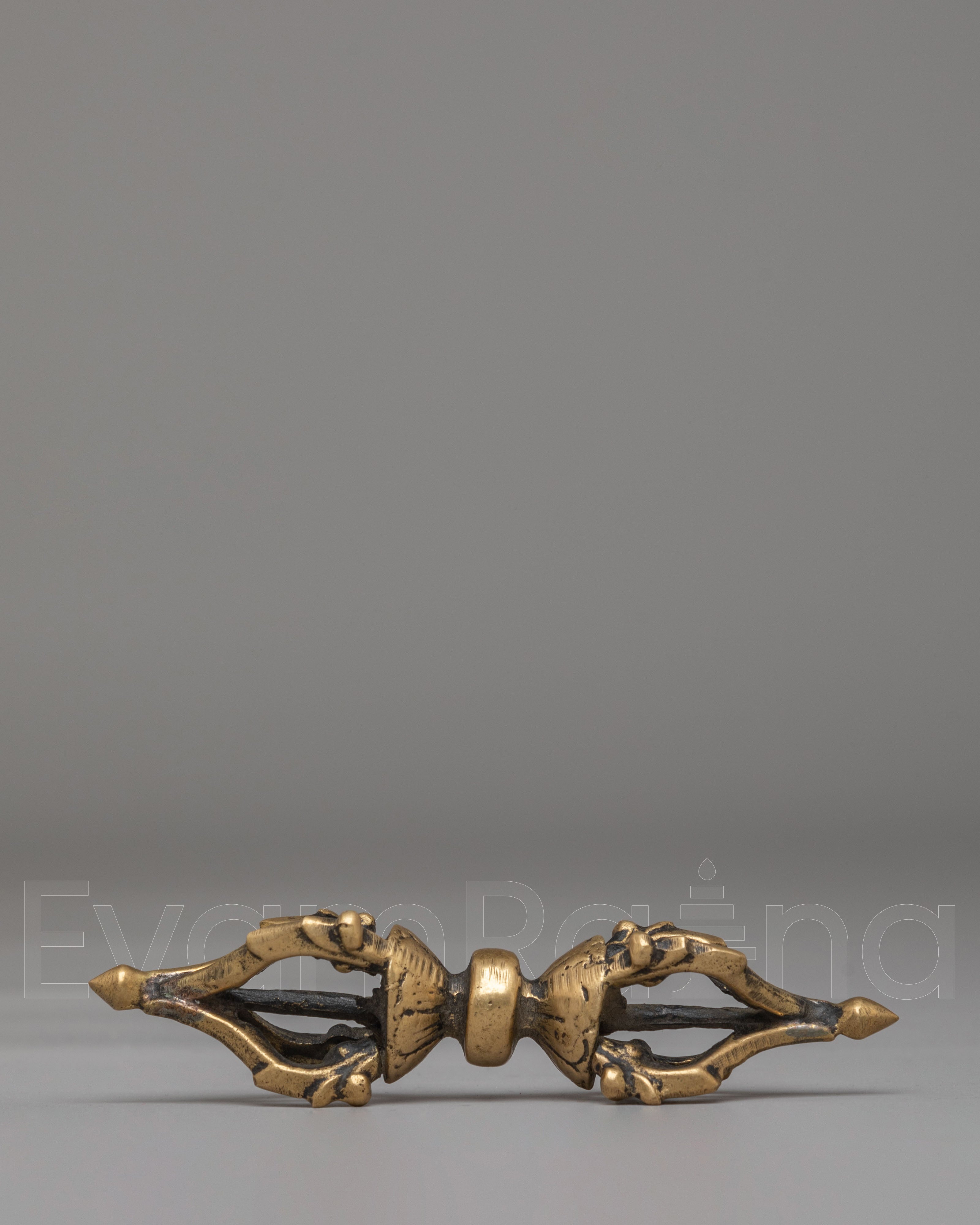 The Tibetan Dorje represents indestructibility and efficiency, overcoming all obstacles. Symbolically, the Dorje Vajra destroys ignorance. In Tibetan Buddhist rituals, the vajra is often paired with the bell, symbolizing the masculine and feminine, yin and yang, and the balance between practical action and compassion. The shape of the Tibetan Dorje is symmetrical, with two pyramidal heads representing samsara and Nirvana, which cancel each other out at its center due to the ring of Emptiness. Having a Dorje at home can provide protection against various attacks.