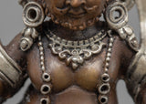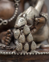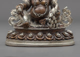 Dzambhala is a protective deity associated with wealth and prosperity. There are many different forms and traditions associated with this wealth deity but he is usually depicted as yellow in color and holding a mongoose in his left hand. This statue has accurate traditional iconography and has fine details.