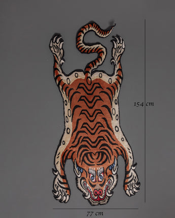 The Handwoven Tiger Design Rug for Home Décor adds a touch of luxury and natural beauty to your home. This rug measures 154cm in height and 77cm in width, making it the ideal size for making a big statement in any room. It's a beautiful tiger pattern reflects the sense of strength and beauty, combining elegance and charm. The viscose material makes the rug not only visually appealing but also soft, making it an excellent complement to any modern or traditional house.