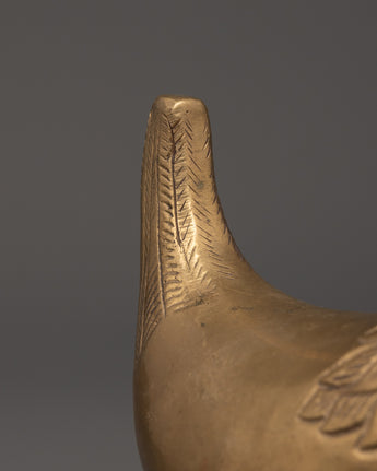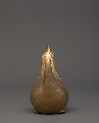 This brass hen sculpture combines cultural iconography with handmade craftsmanship, displaying charm and power in its simplicity. It is 11cm in height and 15cm in breadth, weighs 0.59kg, and has a balanced, tactile shape with intricate feather engravings that demonstrate creative mastery. Its golden shine makes it an ideal complement for wooden shelves, altars, and traditional-style homes.