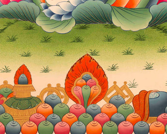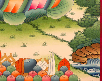 The use of 24k gold in this Thangka enhances its beauty and spiritual potency. Gold symbolizes wealth, purity, and divine energy. The intricate details and vibrant colors, highlighted by the gold, make this Thangka a visual and spiritual masterpiece.