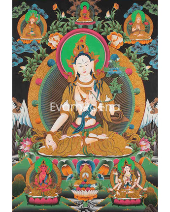 Place this artwork in your sacred space to welcome White Tara's positive energy and let her compassionate presence guide you on your spiritual journey.