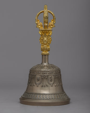 This exquisite Vajra and Bell set is a true masterpiece of craftsmanship. Both the Vajra and Bell are meticulously handcrafted with great attention to detail. The top of the Bell and Vajra is made from brass, which gives them a stunning golden hue and adds a touch of elegance to the set. The Bell itself is crafted from bronze, a durable and resonant metal that ensures a beautiful sound when played. Together, this high-quality Vajra and Bell set is not only a functional musical instrument for rituals and ceremonies but also a symbol of spiritual significance and reverence.