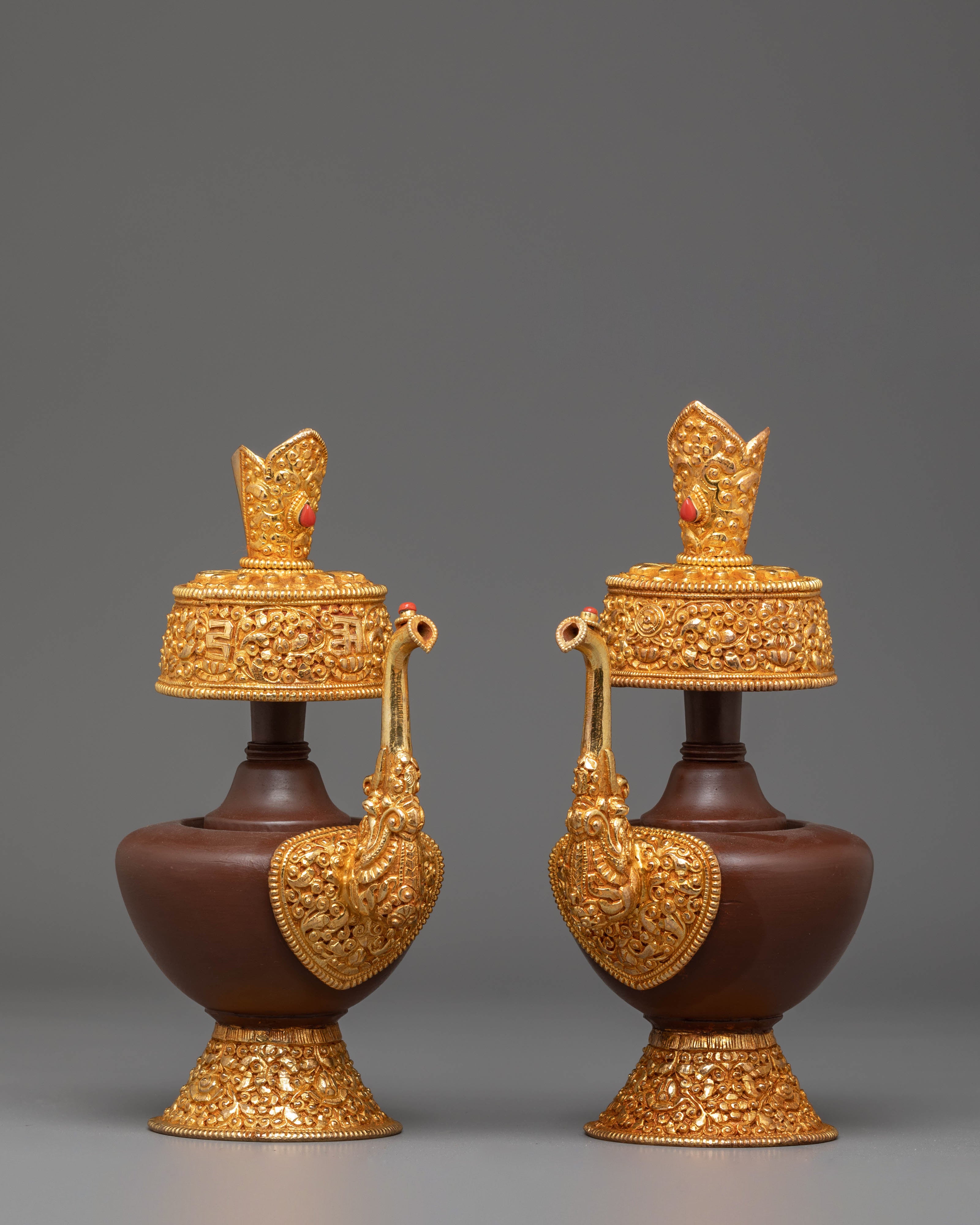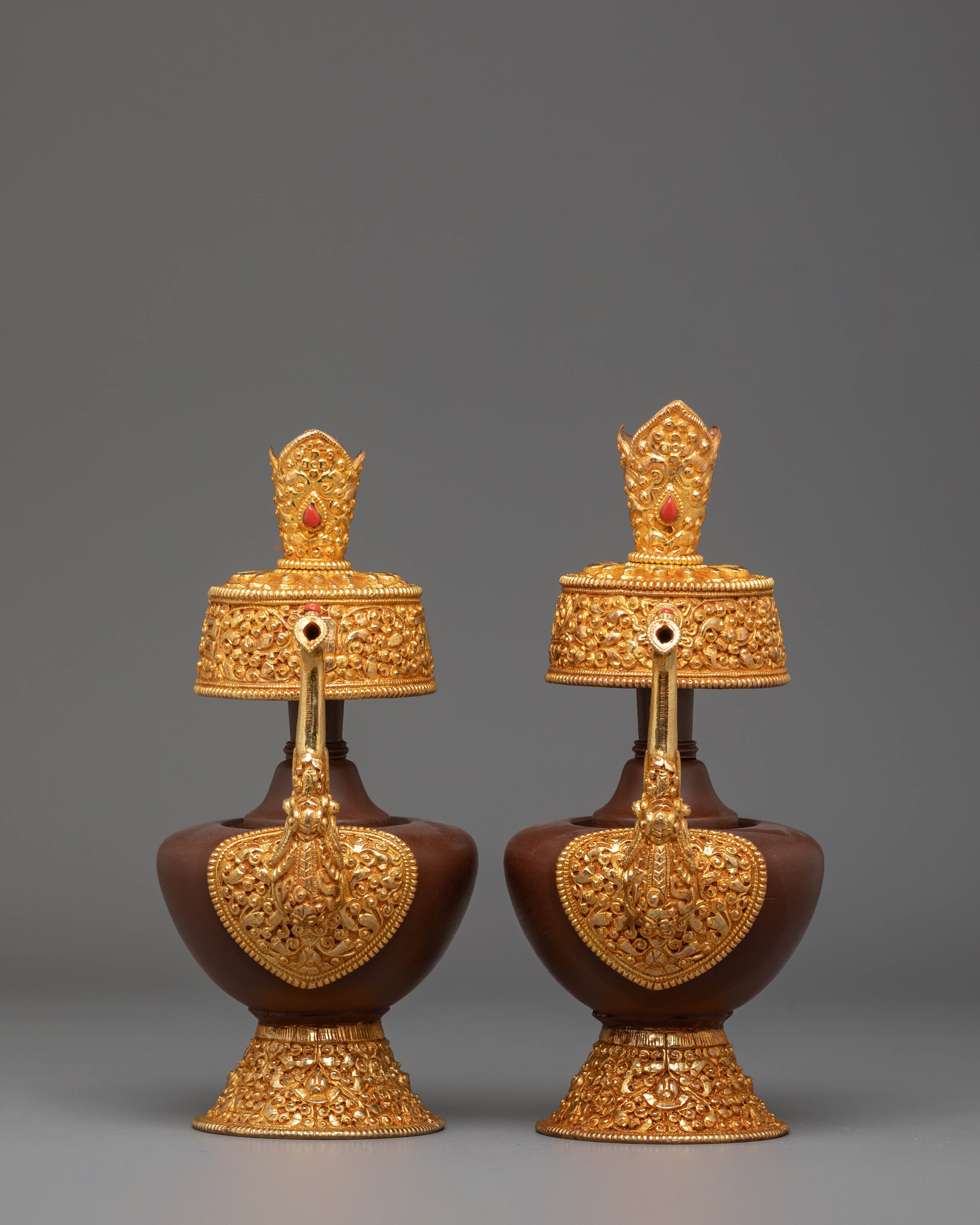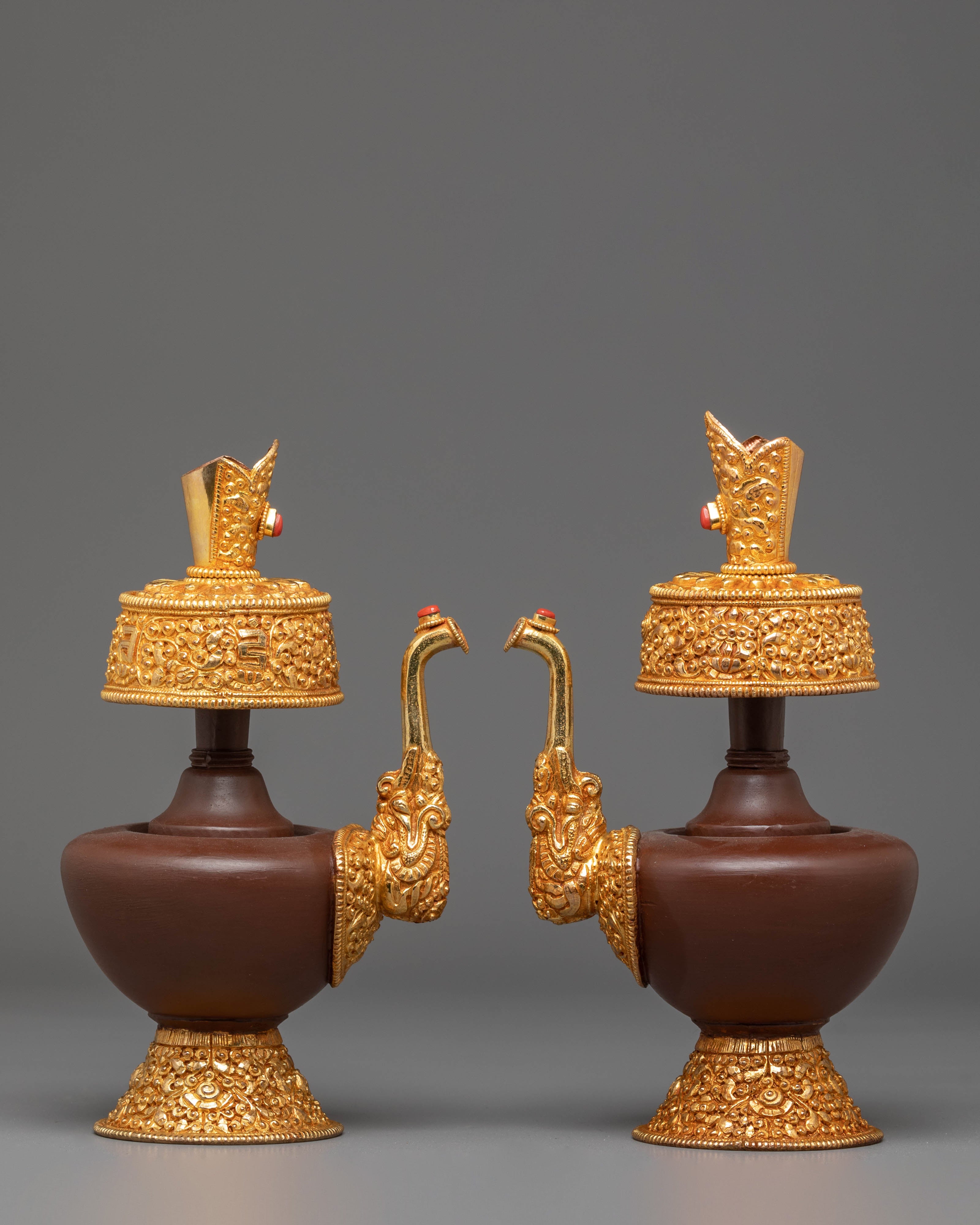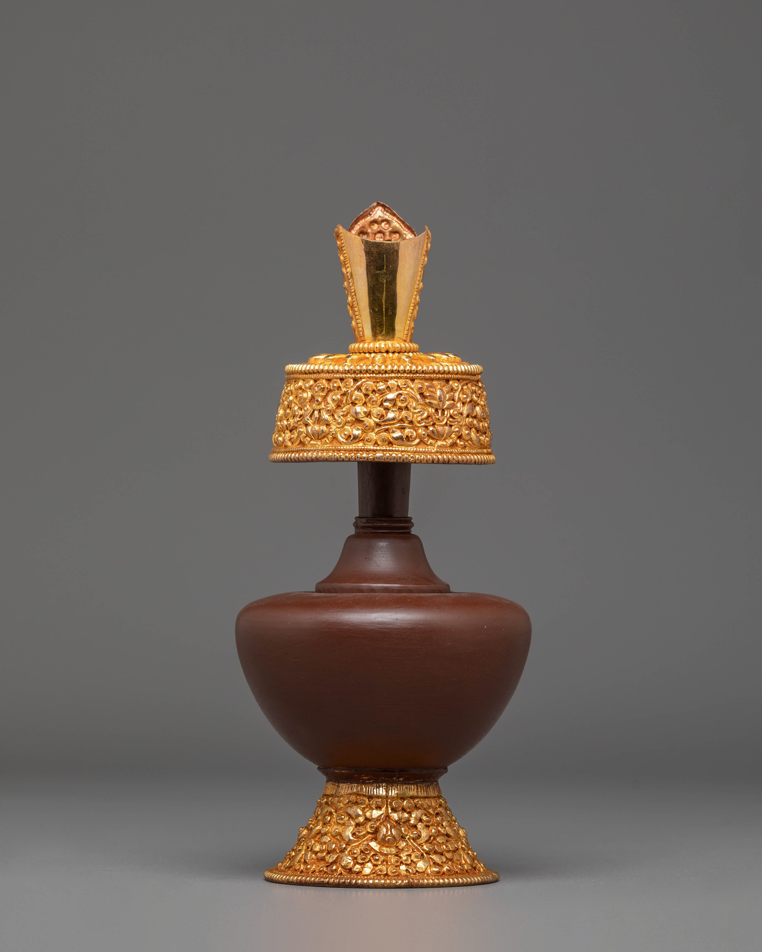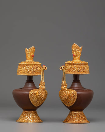 Perfect for Buddhist altars, meditation rooms, or as a meaningful gift for spiritual practitioners, this Himalayan Bhumba Set embodies the deep cultural heritage of Tibetan Buddhism. Whether used for rituals, displayed as part of your sacred space, or added to your Himalayan art collection, these beautifully crafted vessels bring a powerful presence of protection, purification, and blessings. The combination of copper and fire-gold plating ensures this set will remain a cherished item for years to come.