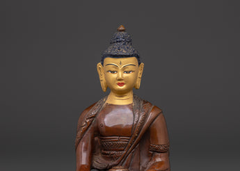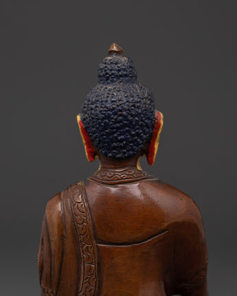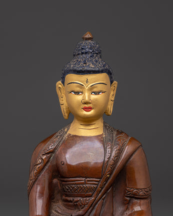 Himalayan Buddha Shakyamuni Statue | Oxidized Copper & Gold Face Painting