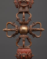 Himalayan Buddhist Ritual Dagger | Oxidized Copper Phurba with Dorje