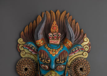 Expertly handcrafted from wood and finished with rich acrylic colors, this Garuda wall hanging radiates vibrancy and depth. Every detail of the carving highlights the artisan’s devotion, showcasing Garuda’s dynamic wings and powerful stance. As a spiritual wall art piece, it embodies Himalayan craftsmanship while carrying deep cultural and sacred significance. Place it in your home or shrine to invite divine protection, spiritual balance, and blessings into your space.