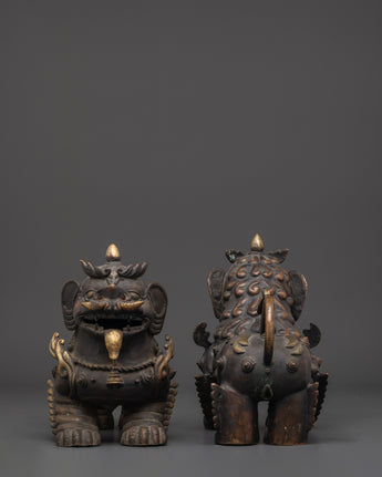 The Himalayan Guardian Lion Sculptures Set is a treasured emblem of power and holy protection in Himalayan and Tibetan cultures. These lion guardians are frequently seen guarding monasteries' gates, considered to protect sacred sanctuaries from harmful energies. This bronze set continues that tradition, making it a valuable addition to your meditation space or spiritual shrine.