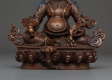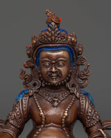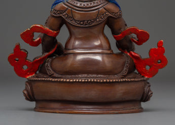 The Handmade Statue of Wealth Lord Dzambhala stands at 5.5” (14 cm) in height with a 4.7” (12 cm) base, weighing 0.722 kg. Expertly crafted from an oxidized copper body and detailed with acrylic paintings, it captures the powerful presence of the deity associated with wealth and abundance. The statue features delicate detailing and traditional iconography, making it a meaningful addition to personal altars, meditation spaces, or spiritual collections focused on prosperity and good fortune.