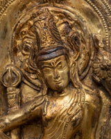 The Copper Indra Dev Peaceful Statue is a divine representation of peace, prosperity, and protection. Crafted from copper, this statue features Indra Dev, the Hindu god of rain, thunder, and war, depicted in a peaceful and serene posture. Sitting at 33cm in height and 19.5cm in width, this statue is perfect for adding a touch of spirituality and tranquility to any space. Weighing 5.27kg, it provides a stable and lasting presence in your home or meditation area. Indra Dev is revered for his ability to bring rain and blessings, symbolizing abundance and harmony.