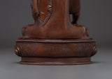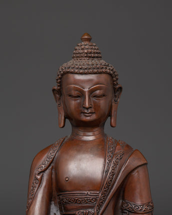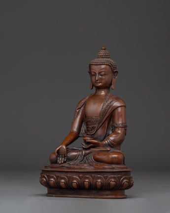 This Peaceful Jewel-born Buddha Ratnasambhara statue measures 8.5”/21.5cm in height and 5.5”/14cm at the base, weighing 1.05 kg. Crafted from oxidized copper, this statue represents Ratnasambhara, the Buddha of wealth and prosperity. Known for bestowing riches and good fortune, Ratnasambhara is revered for his compassionate nature and ability to grant material abundance and spiritual blessings. Expertly handcrafted by skilled artisans, this statue is a beautiful addition to altars, meditation areas, or sacred spaces, inviting prosperity and peace into your home or practice.