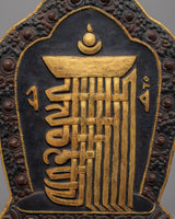 This stunning Kalachakra Mantra Wall Art, built on an oxidized copper body with fine gold embellishments, stands 32.5 cm tall and 23 cm wide and weighs 0.55 kg. The rusted finish provides it a timeless, ancient appearance, while the gold detailing presents an aura of divine beauty, increasing visual depth and evoking a sense of calm.