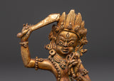 Skillfully handcrafted by Tibetan artisans, this Khadgapani statue captures intricate details reflecting ancient Buddhist traditions. The radiant gold plating symbolizes spiritual purity and enlightenment, while the copper body signifies grounding and healing energy. Displaying Khadgapani on your altar or meditation area enhances mindfulness, encourages spiritual insight, and strengthens protective blessings around you.