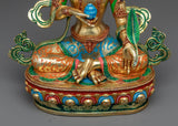 With our Ksitigarbha Bodhisattva Copper Statue, you may go deep into the universe of unshakable commitment and infinite compassion. Every contour and every detail represents hours of painstaking craftsmanship, perfectly portraying the soul of this beloved Bodhisattva. The statue, made of pure copper and embellished with 24k gold and beautiful acrylic paints, generates thoughts of optimism and loyalty.