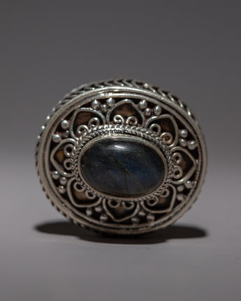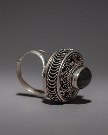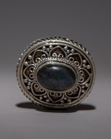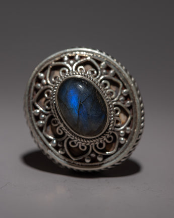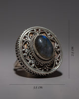 Our exquisite Labradorite Ring, carefully handmade from sterling silver, will elevate your sense of style. In addition to providing the ideal fit for your finger, this adjustable ring beautifully displays the captivating beauty of labradorite.