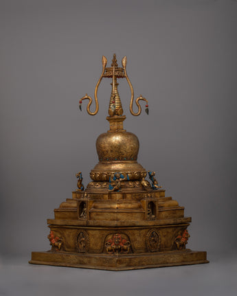 - This Stupa is built with a Copper body and richly gold-plated, guaranteeing longevity and a classic, dazzling appearance.
