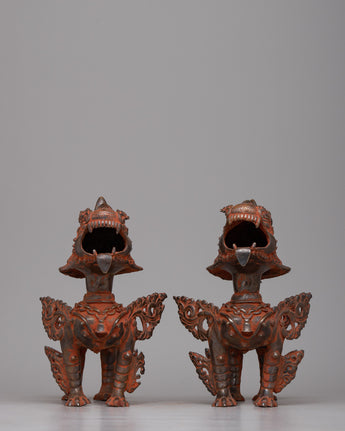 Lion Brass Statue Set