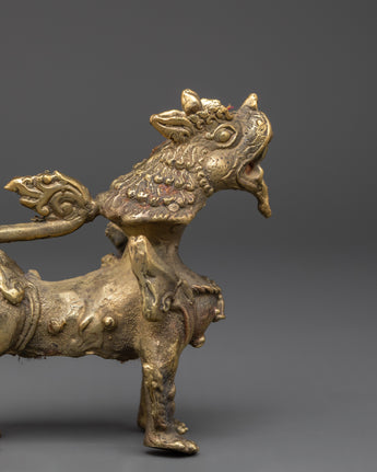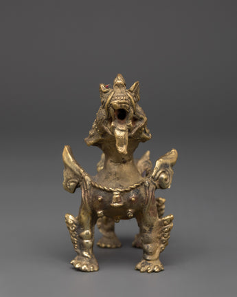 The intricate workmanship on the mane, torso, and stance demonstrates the expertise and dedication of traditional craftspeople. Every curve and etching emphasizes the lion's regal spirit, which represents vitality, leadership, and balance. The polished brass surface has a warm, brilliant shine that adds an air of confidence and calm to your home or workstation. When displayed on an altar, desk, or shelf, it serves as a potent reminder of inner strength and determination.