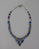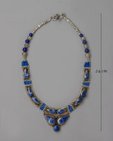 Our Tibetan Silver Necklace perfectly combines traditional craftsmanship and modern flair. It is handcrafted on a white metal body and embellished with beautiful silver plating, capturing the essence of Tibetan culture and beauty. Each bead contains lapis lazuli artificial powder, which provides a rich blue.