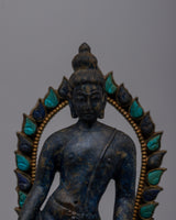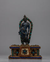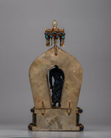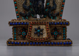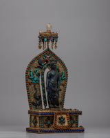 Adorned with original lapis lazuli stones, representing wisdom, truth, and spiritual understanding. - It is inlaid with artificial coral and turquoise stones, enhancing the statue's spiritual energy and resonance.