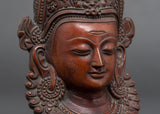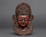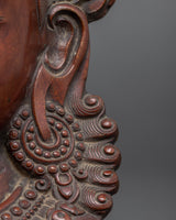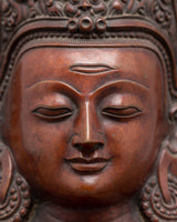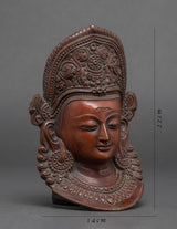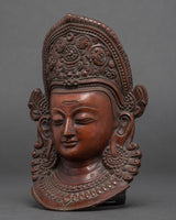 Our Lord Indra mask is created from delicate copper craftsmanship. The mask is adorned with a crown above the deity's head, which is embedded in countless details, indicating his strength and position. The attention to detail and craftsmanship demonstrated in this one-of-a-kind masterpiece are amazing.