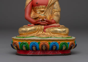 Amitabha Buddha, depicted here in serene repose, gently cradles an alms bowl in his lap—a humble symbol of renunciation and the serene simplicity embraced by the enlightened. His tranquil expression invites you into a story of boundless compassion and timeless wisdom, reflecting his role as the Lord of Infinite Light. Legend speaks of Amitabha’s vow to guide all beings toward rebirth in his radiant Pure Land, a place of ultimate peace and spiritual awakening. This statue captures not just his form, but his enduring promise to support every soul on its path to freedom and enlightenment, making it a meaningful centerpiece for contemplation and inspiration.