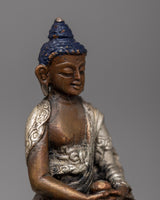 This machine-made statue blends traditional Buddhist iconography with modern craftsmanship, making it ideal for individuals looking to bring a bit of serenity and contemplation into their surroundings. The Amitabha Buddha is a beautiful addition to any collection or area and a meditation focus point because to the oxidized copper beneath the silver's stunning contrast.