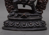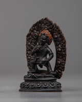 Introducing Our Machine-The Black Jambhala Statue was skillfully constructed on a copper body with remarkable attention to detail. Standing 7.5cm tall, this statue embodies Black Jambhala's protective and auspicious powers.