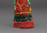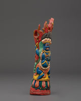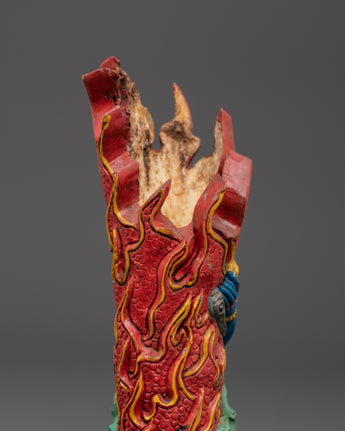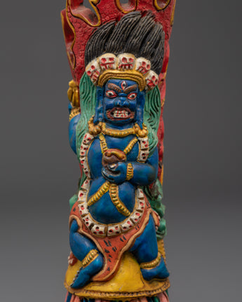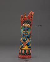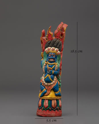 This Mahakala Bone Carving with Acrylic Painting is a strong work of Tibetan Buddhist art that represents protection, knowledge, and the removal of internal impediments. This ethically obtained buffalo bone carving, 18.5cm tall and 5.5cm wide, is meticulously hand-painted with vibrant acrylic colors to bring the wrathful protector deity Mahakala to life. Mahakala, traditionally found on shrines and altars, signifies the fierce compassion of enlightened beings who remove obstacles to the spiritual path.