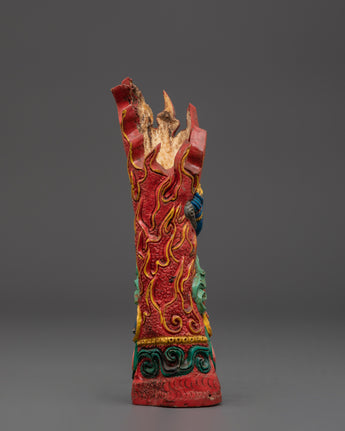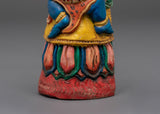 The elaborate carving, crafted with meticulous care, emphasizes Mahakala's terrifying countenance, symbolic decorations, and the flame aura that surrounds him. The usage of buffalo bone has a deep spiritual importance in Himalayan traditions, and the colorful acrylic painting adds to the deity's vitality and presence. This sacred item is suitable for practitioners who wish to summon Mahakala's blessings of protection, strength, and clarity during meditation or ritual practice. This authentic Mahakala Bone Carving with Acrylic Painting allows you to bring the profound spirit of the Dharma guardian into your area. This profound Buddhist carving exudes transformational force, whether displayed in a personal meditation room, spiritual altar, or as a valuable collector's item.