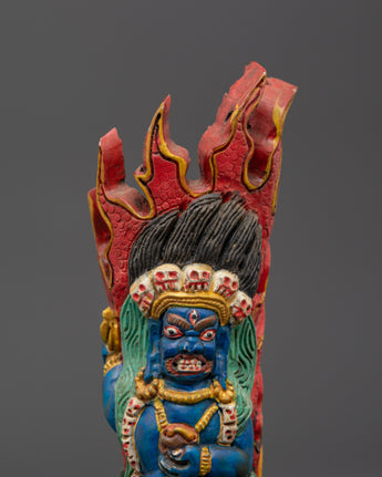 Mahakala Bone Craving with Acrylic Painting | Tibetan Buddhist Protector Deity Art