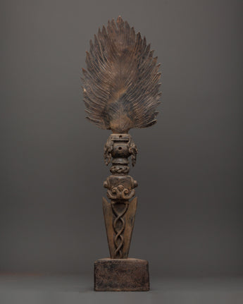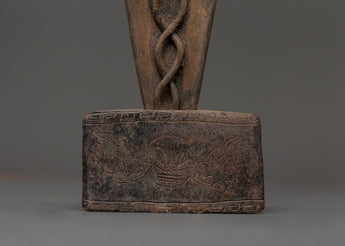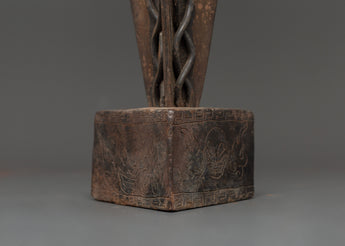 This iron Mahakala Phurba is more than simply a beautiful item; it serves as a spiritual development tool. Whether used in ceremonial rites, energy cleansing, or as a bold centerpiece on your altar, it exudes unshakable strength and protection. Invite Mahakala's sacred force into your space and feel the transformative power of this potent spiritual tool.