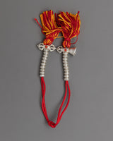 Our 98% pure silver Mala Bead Counters are handcrafted for precision and elegance in meditation practices. These counters have a small, intricately attached vajra and bell, which are traditional Buddhist symbols. The high-quality silver provides durability as well as a refined aesthetic, making these counters an excellent tool for mantra recitation.